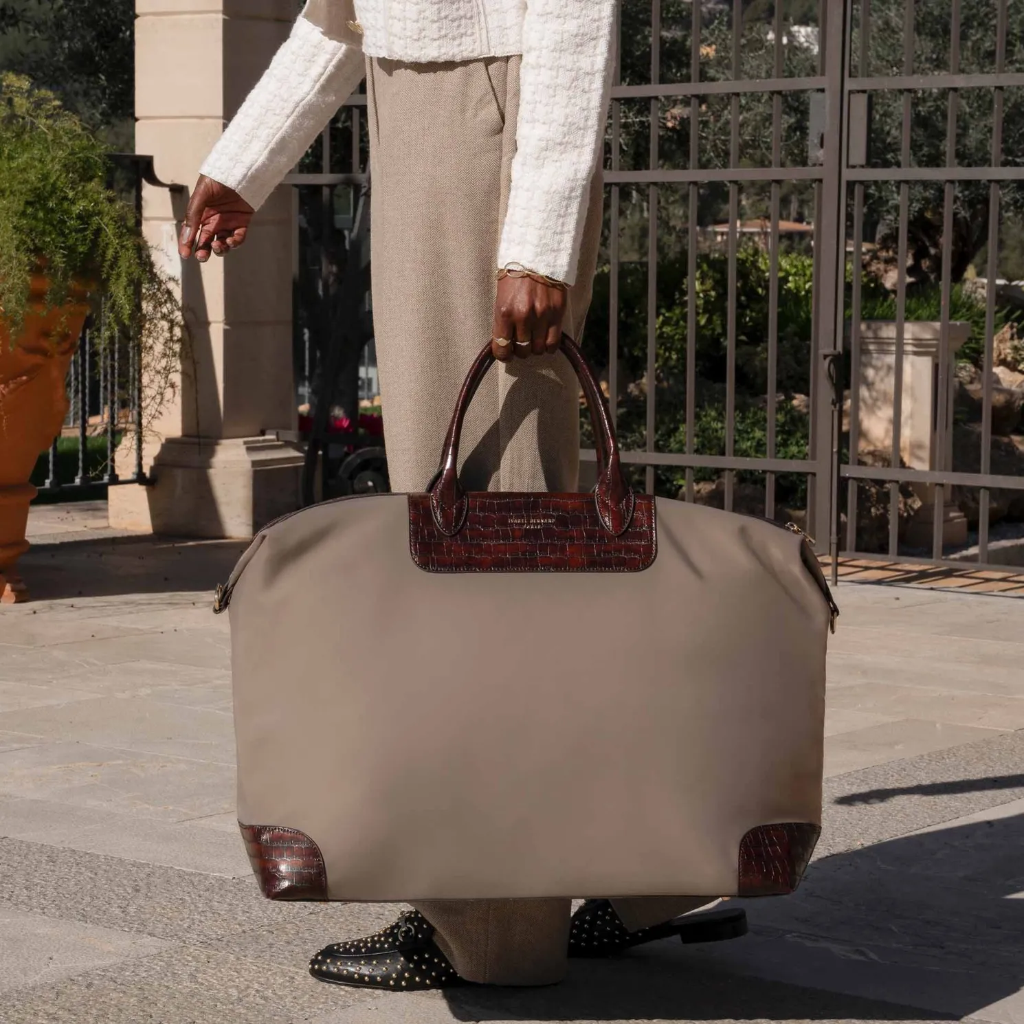 De medium-sized Du Louvre reistas is de perfecte reispartner voor een weekendje weg. Vervaardigd uit een combinatie van nylon en PU-leer maakt de tas duurzaam en licht in gewicht. Nylon biedt sterke weerstand tegen slijtage en is gemakkelijk schoon te maken, terwijl PU leer zorgt voor een luxe uitstraling. Het interieur is gevoerd met een zachte polycotton, wat zowel bescherming biedt als stijl toevoegt.