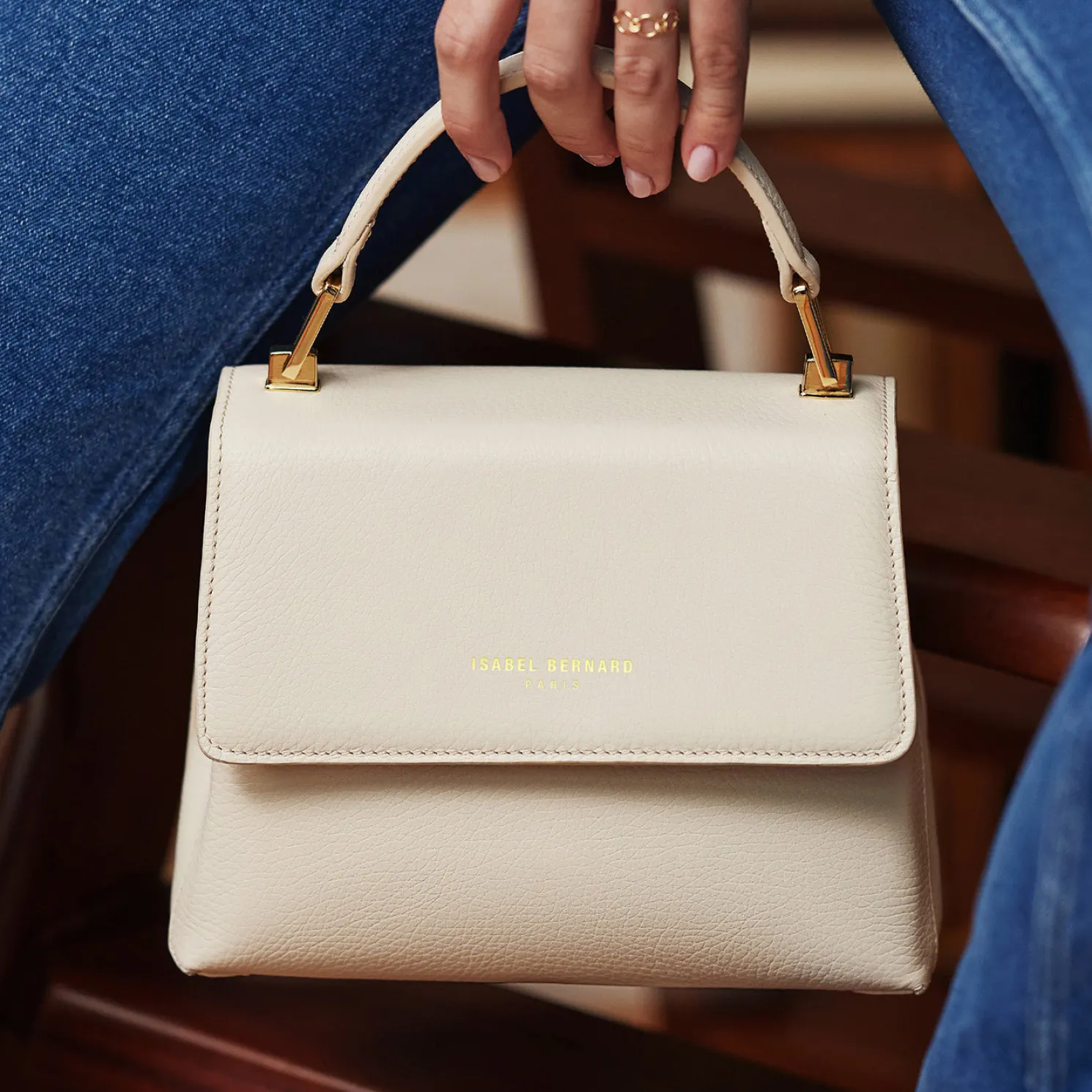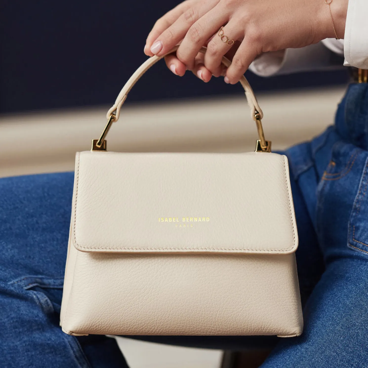 Femme Forte Heline crème leren handtas van kalfsleer