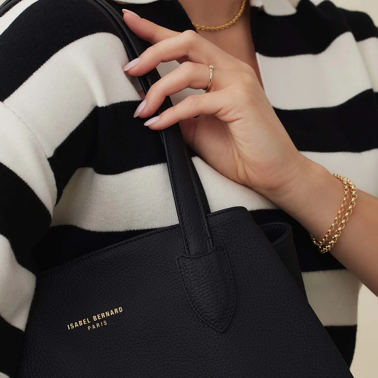 Kleur: zwart Materiaal: hoogwaardig kalfsleer, suède Maten (B x H x D): 39 x 34 x 9 cm (gemeten aan de onderkant van de tas) Hoogwaardig kalfsleerDe tas is afsluitbaar door middel van een magneetsluiting De uitneembare clutch is afsluitbaar door middel van een ritssluiting Goudkleurig logo op de voorkant van de tas